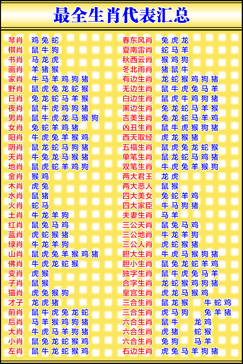 前肖:鼠牛虎兔龙蛇 后肖:马羊狗鸡猴猪